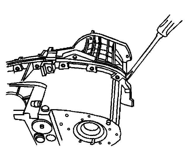 16. Using the J 45358, shear the sealer securing the front and rear case half together.