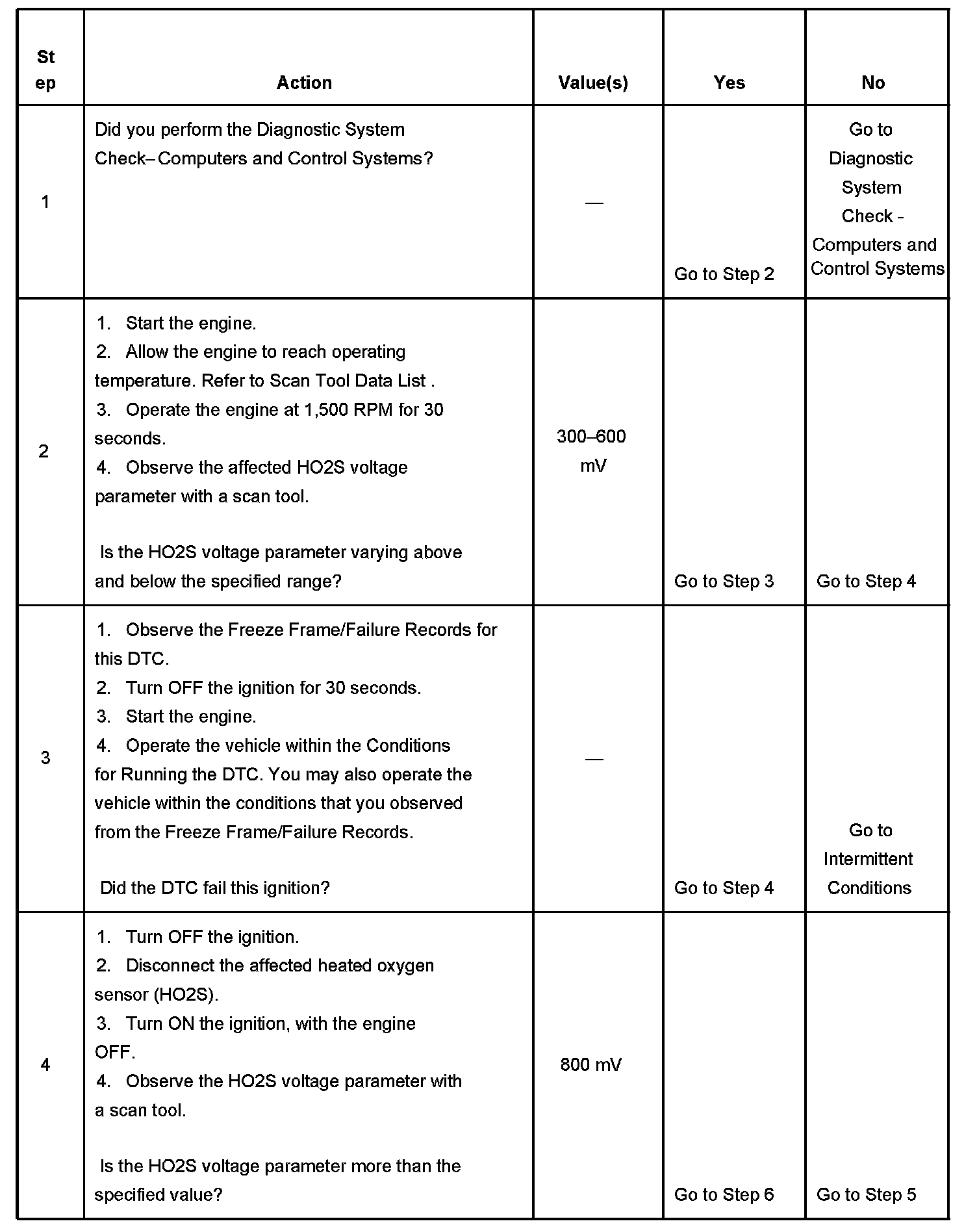 The PCM detects that the affected HO2S voltage parameter is between 350-550 mV for 60 seconds.