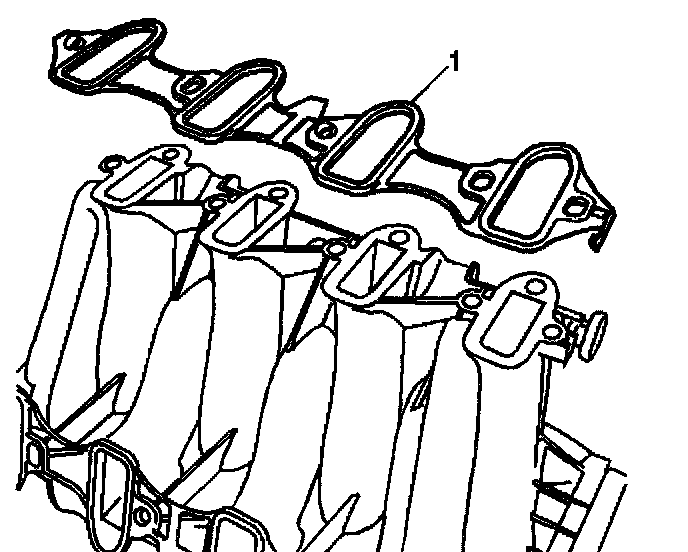 13. Remove the intake manifold gaskets (1) from the intake manifold.