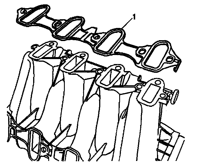 1. Install new intake manifold gaskets (1) to the intake manifold.