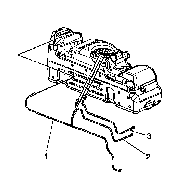 3. Install and connect the fuel feed (3) and return (2) pipes to the sending unit and retaining clips.