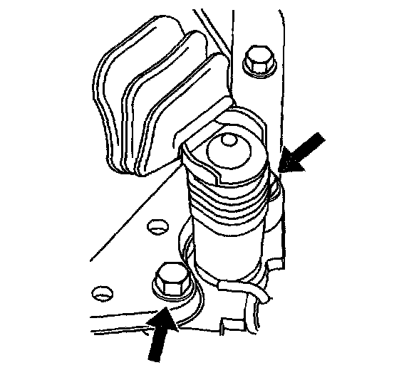14. Remove the 2 hydraulic slave cylinder retaining bolts from the transmission, then position the slave cylinder aside.