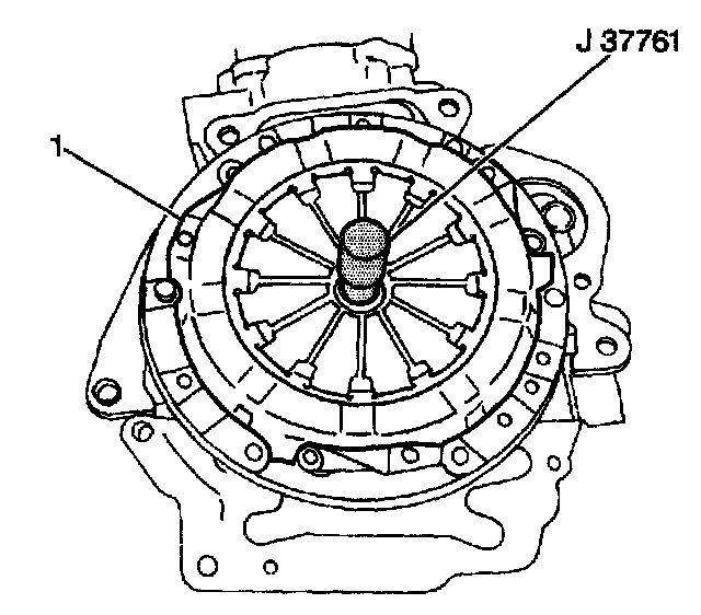 1. Inspect the clutch alignment by inserting the J 37761 through the clutch disc and into the crankshaft pilot bearing. If the J 37761 does not fit through the clutch disc and into the pilot bearing assembly smoothly, the clutch disc may be misaligned. For clutch disassembly and inspection procedures, refer to Clutch Assembly Replacement.