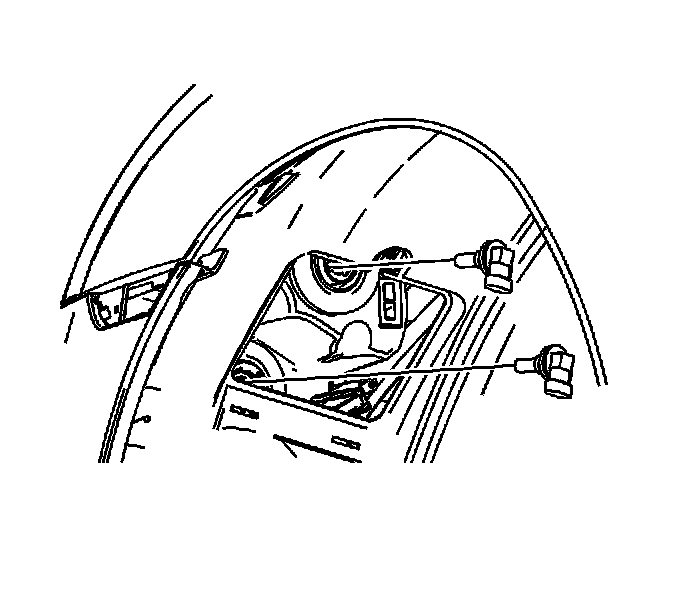 1. Turn wheels to gain access to the headlamp door access cover in the wheelhouse liner.