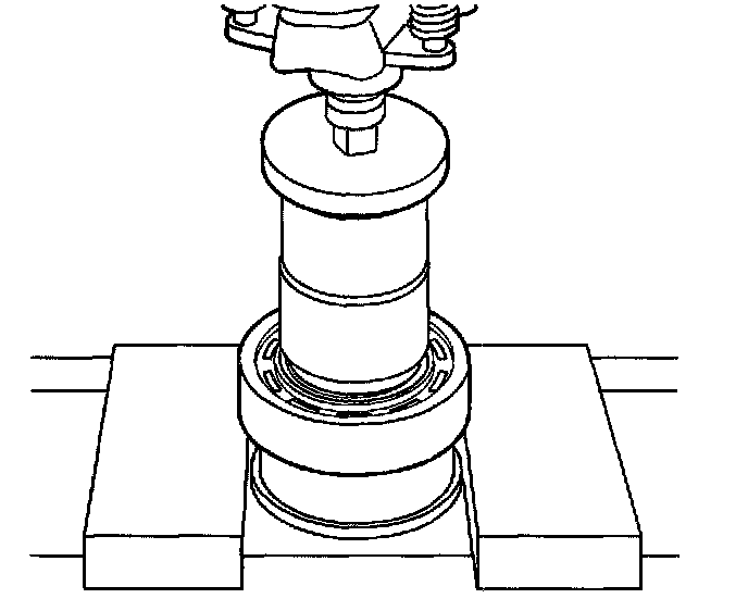 25. Using the flat side of the J 22912-01 and a press, remove the rear output shaft bearing.