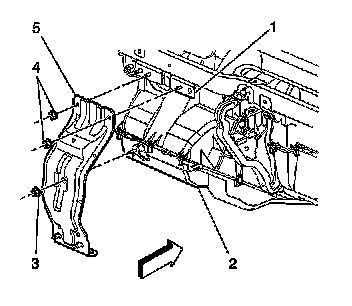 6. Remove the HVAC center support bracket (5) from the HVAC module (2).