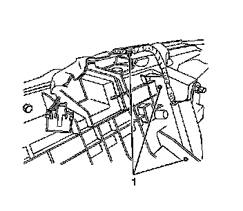 15. Install the IP wire harness retaining screws (1) to the IP support bracket located near the steering column support bracket.