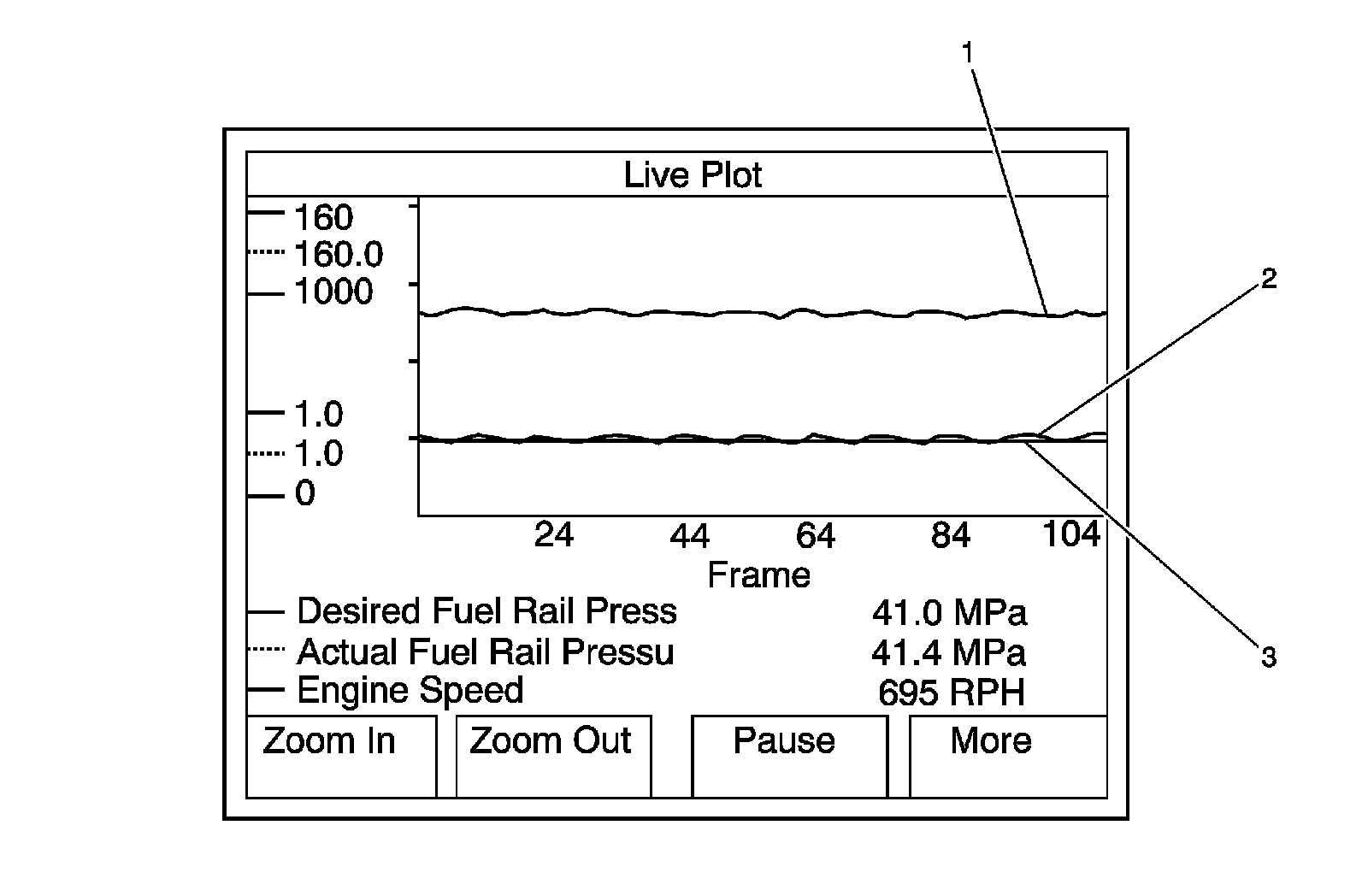 3. Observe the live plot for sharp changes or shark tooth pattern in the Actual Fuel Rail Pressure while performing the following actions: