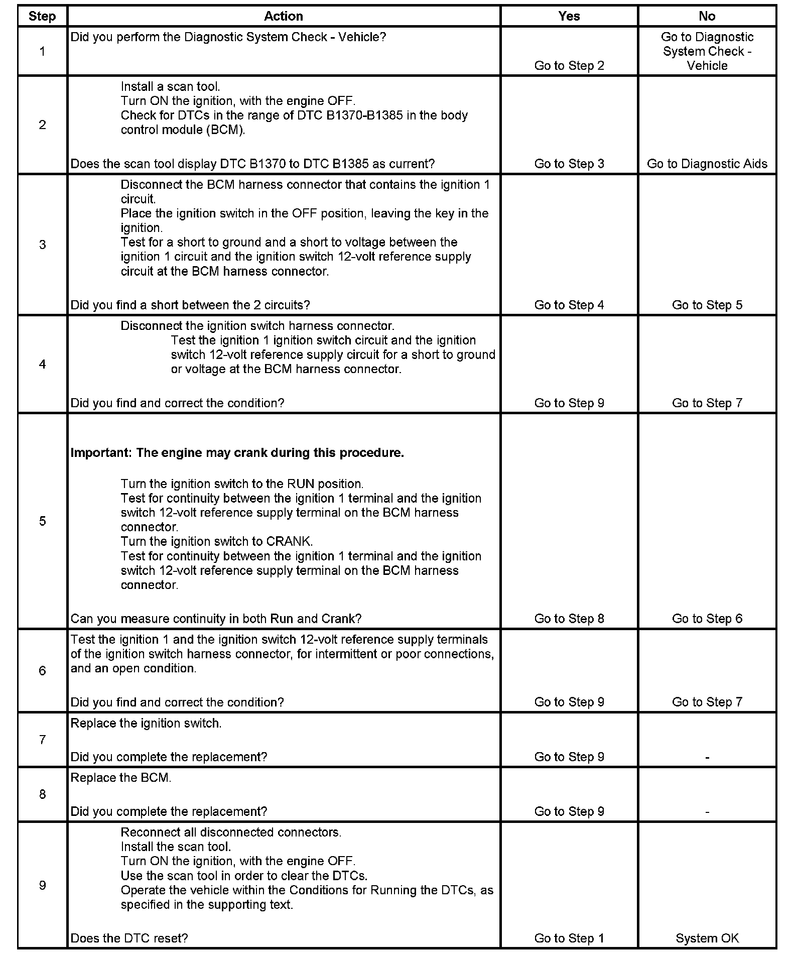 DTC B1370 Device Ignition 1 (ON and START) Circuit