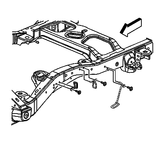 4. For cargo and passenger vehicles, remove the park brake cable guide bolt from the frame.