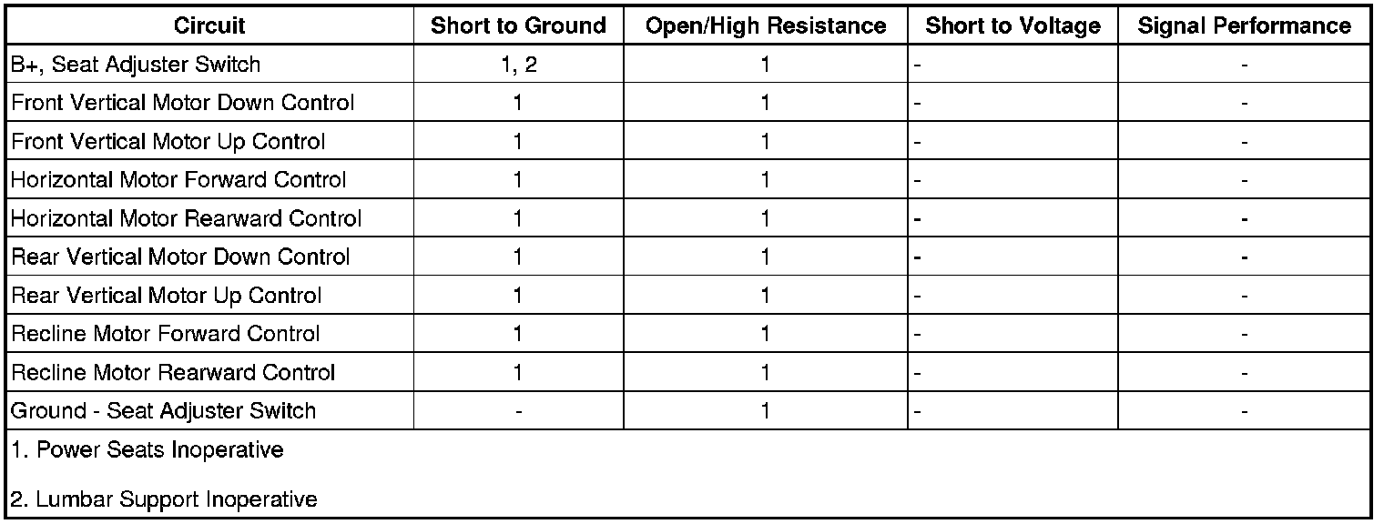 If all power seat functions are inoperative, refer to the Seat Adjuster Switch Circuit Test.