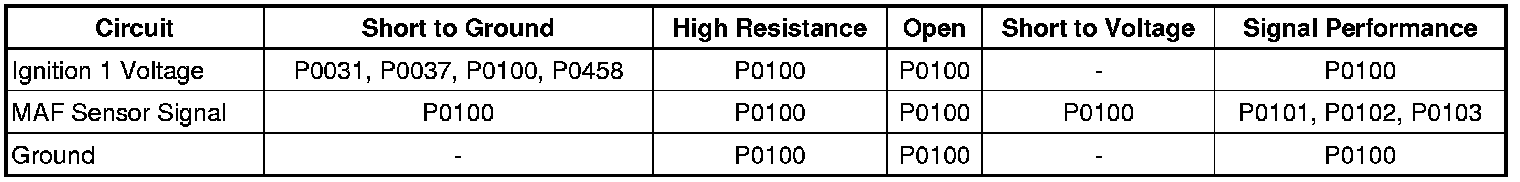 * A steady or intermittent high resistance of 15 ohms or greater on the ignition 1 voltage circuit will cause the MAF sensor signal to be increased by as much as 60 g/s.