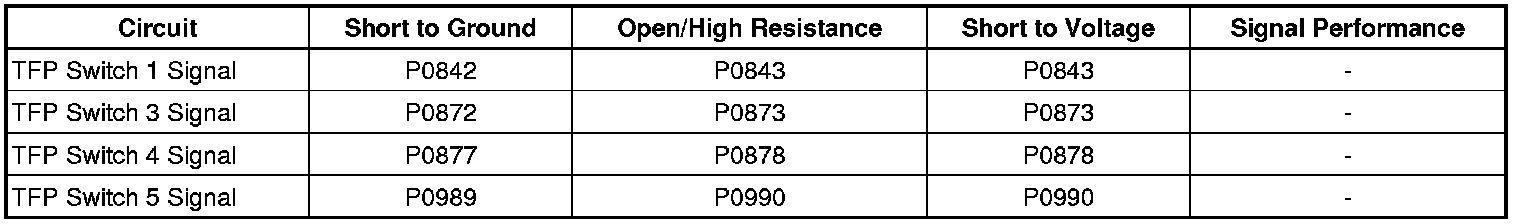 A TFP switch may malfunction due to normal debris in the transmission fluid causing a TFP Switch DTC to intermittently set. This type of condition should not be immediately noticeable to a customer, as the switch outputs are used for shift adaptive pressure and do not cause transmission symptoms unless the switch malfunctions continuously for an extended period of time.