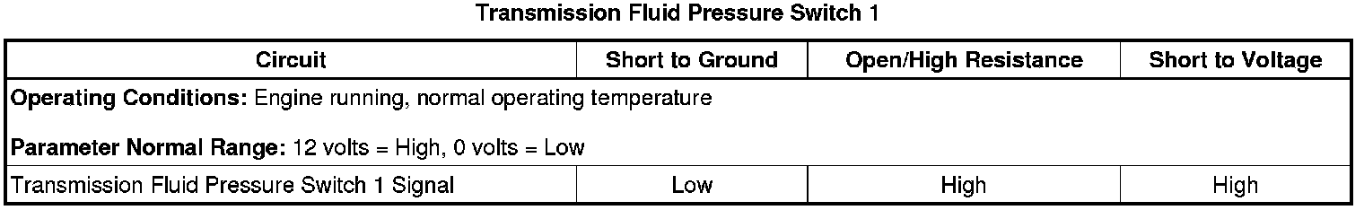 - Transmission Fluid Pressure Switch 1 Circuit High Voltage