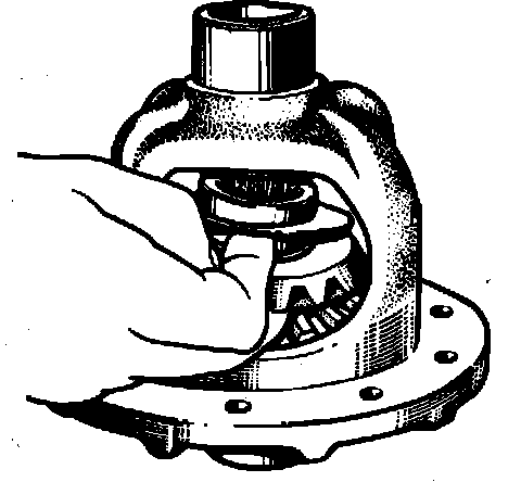 1. Install the thrust spacers in the original positions behind the side gears, then assemble the pinions and side gears, right and left, in the differential gears.