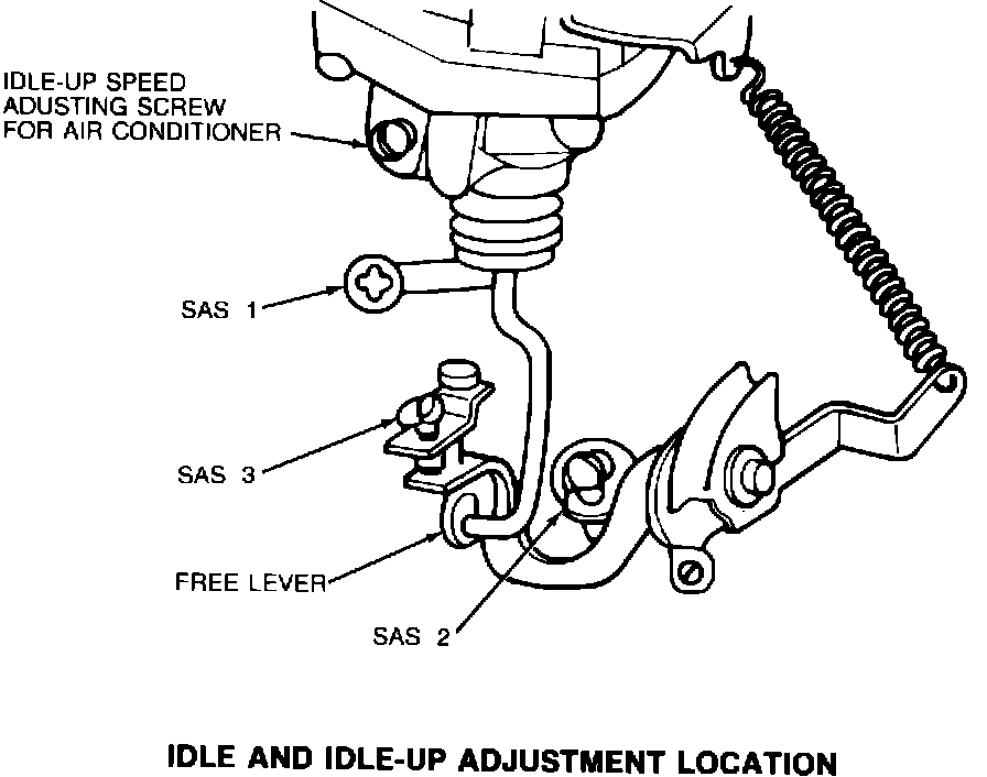 2. Check and adjust curb idle speed if necessary (see Figure 1 for specification) and make adjustment using SAS (speed adjusting screw) 1 (Figure 2). On some models installation of air conditioner will change the curb idle speed already adjusted.