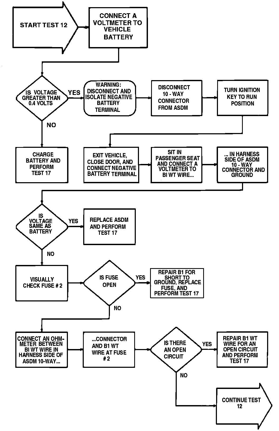 Fig. 37 Test 12, Repair Required For ``Ignition 2 (Run Only) Low'' Fault (Part 1 Of 2):