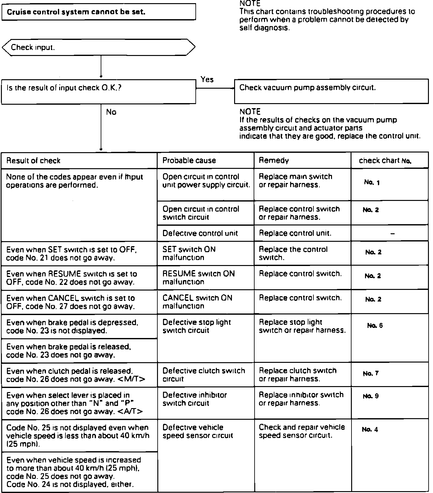 Refer to the appropriate circuit check chart indicated. Refer to Cruise Control/Testing and Inspection/Procedures/Diagnostic Charts.