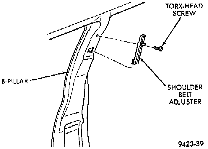 2. Remove bolt holding shoulder belt adjuster to B-pillar.