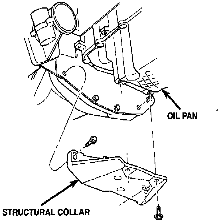 CAUTION: The torque procedure for the structural collar must be followed, as damage to oil pan or collar could occur.