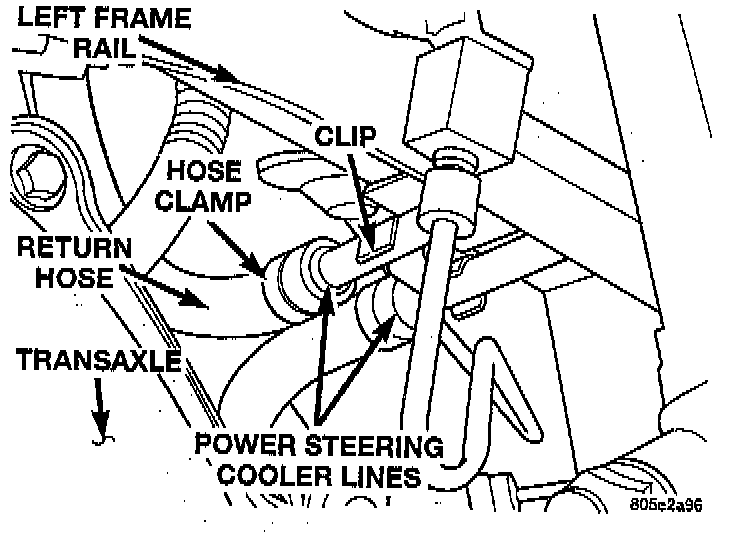 5. Install the-clip holding the 2 power steering fluid cooler lines together.