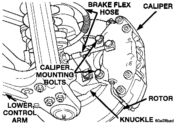 COMPONENTSThe front disc brake system on the Viper is made up of the components listed below.