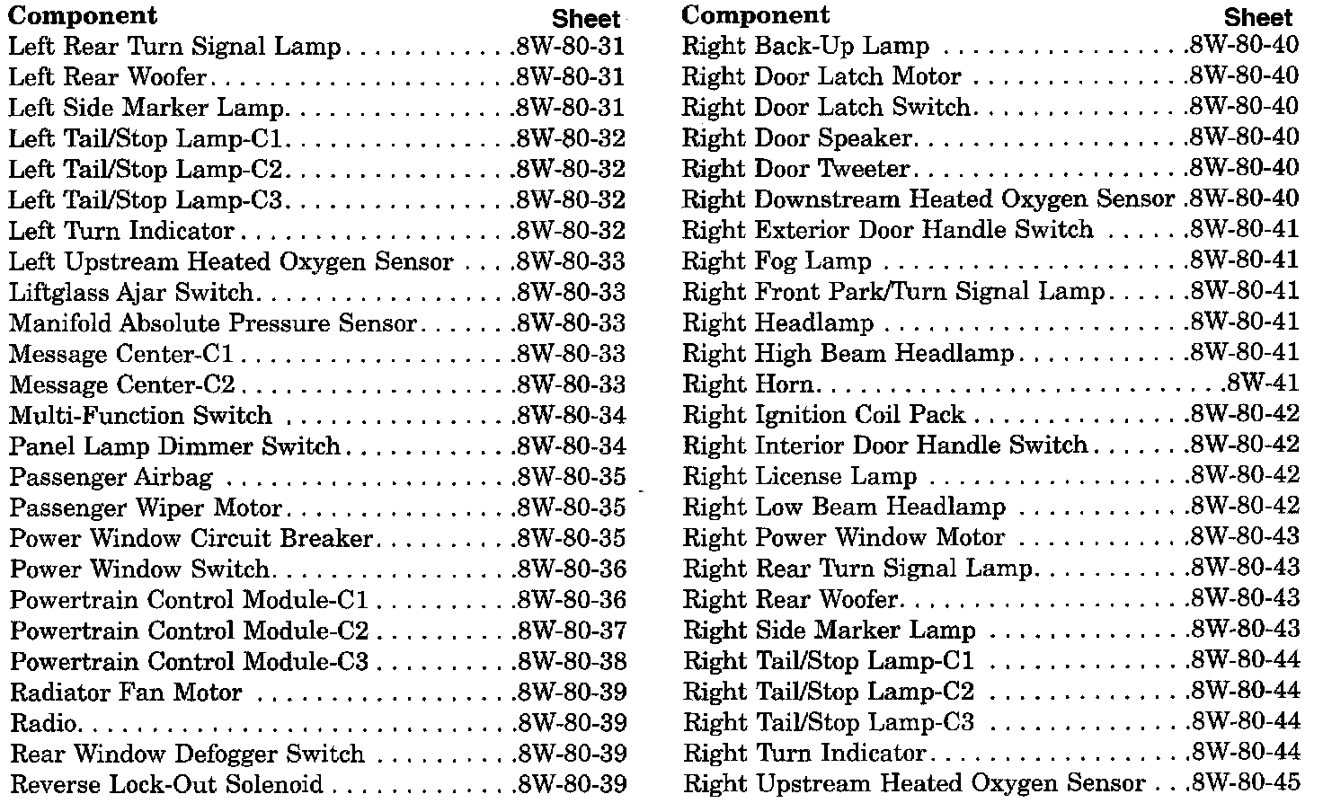 Connector Pin-outs Component Index (Part 3 Of 4):