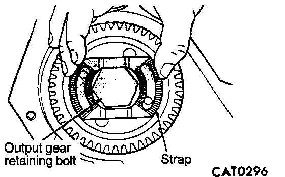 34. Align bolt holes of output gear with retaining strap holes, and install retaining strap.
