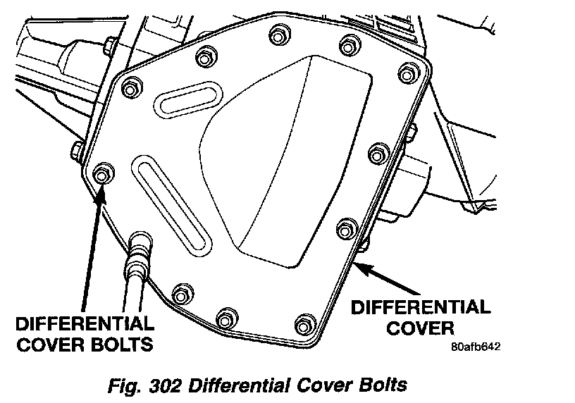 1. Remove the differential cover and bolts (Fig. 302) (Fig. 303).