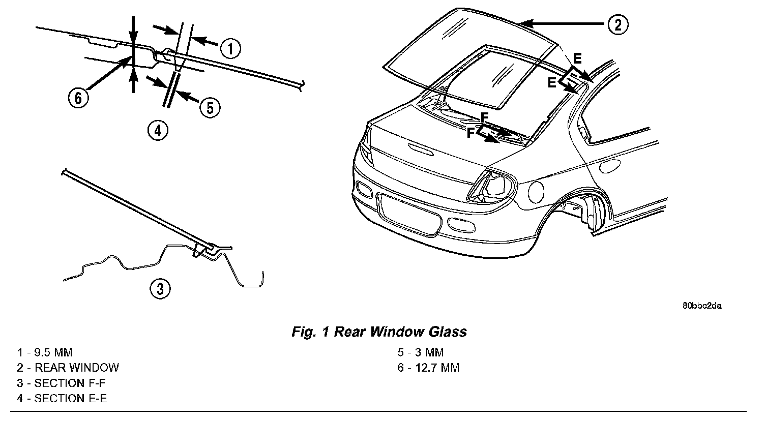 5. Install the glass in the same manner described in the Windshield section of this group (Fig. 1).