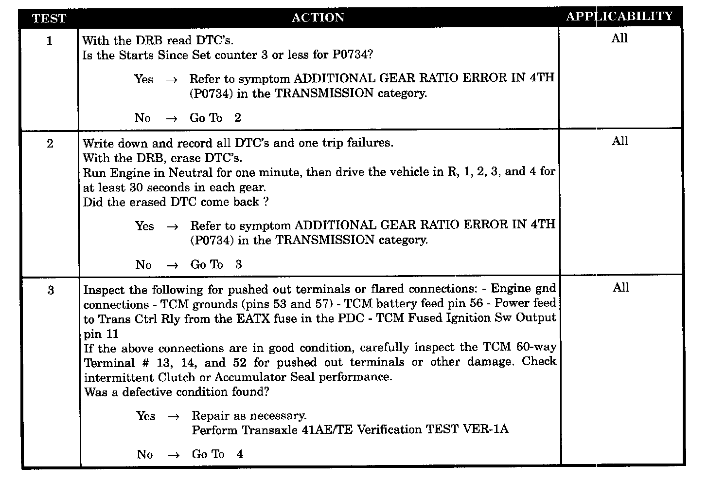 ADDITIONAL GEAR RATIO ERROR IN 4TH (P0734)