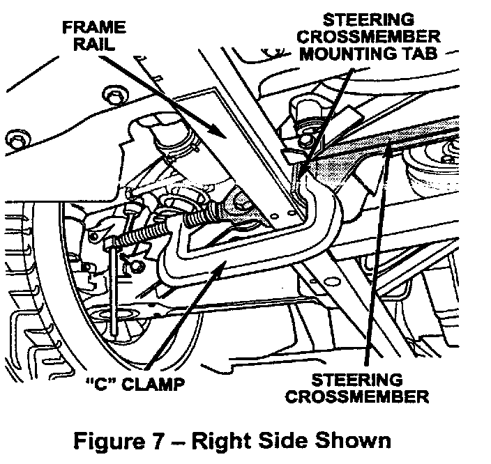 14. Using "C" clamps, clamp the right and left side steering crossmember front tabs to the frame rails (Figure 7).