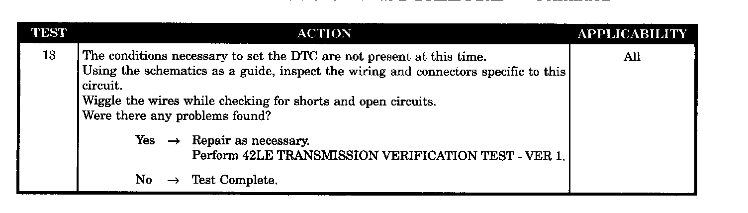 TRANSMISSION RELAY OUTPUT CIRCUIT OPEN