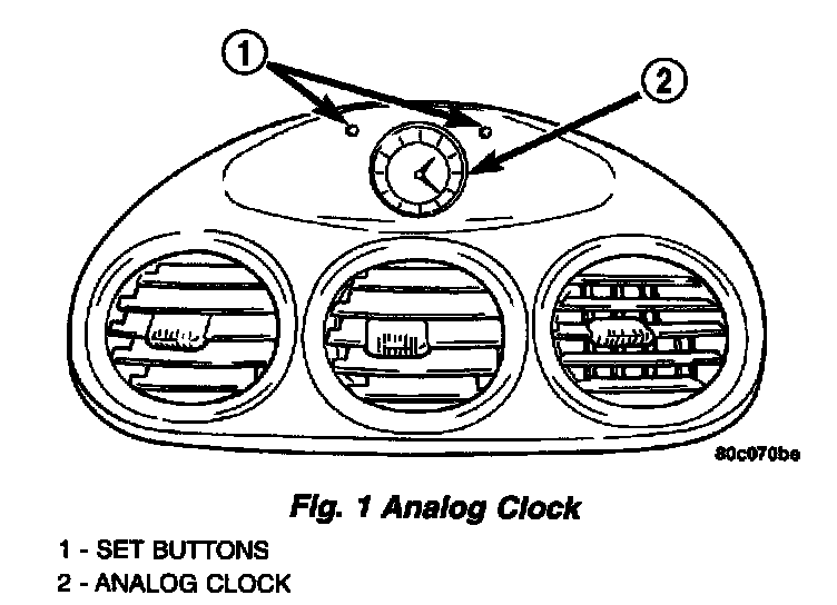 The clock is of analog type (Fig. 1), mounted in the instrument panel center air distribution bezel.