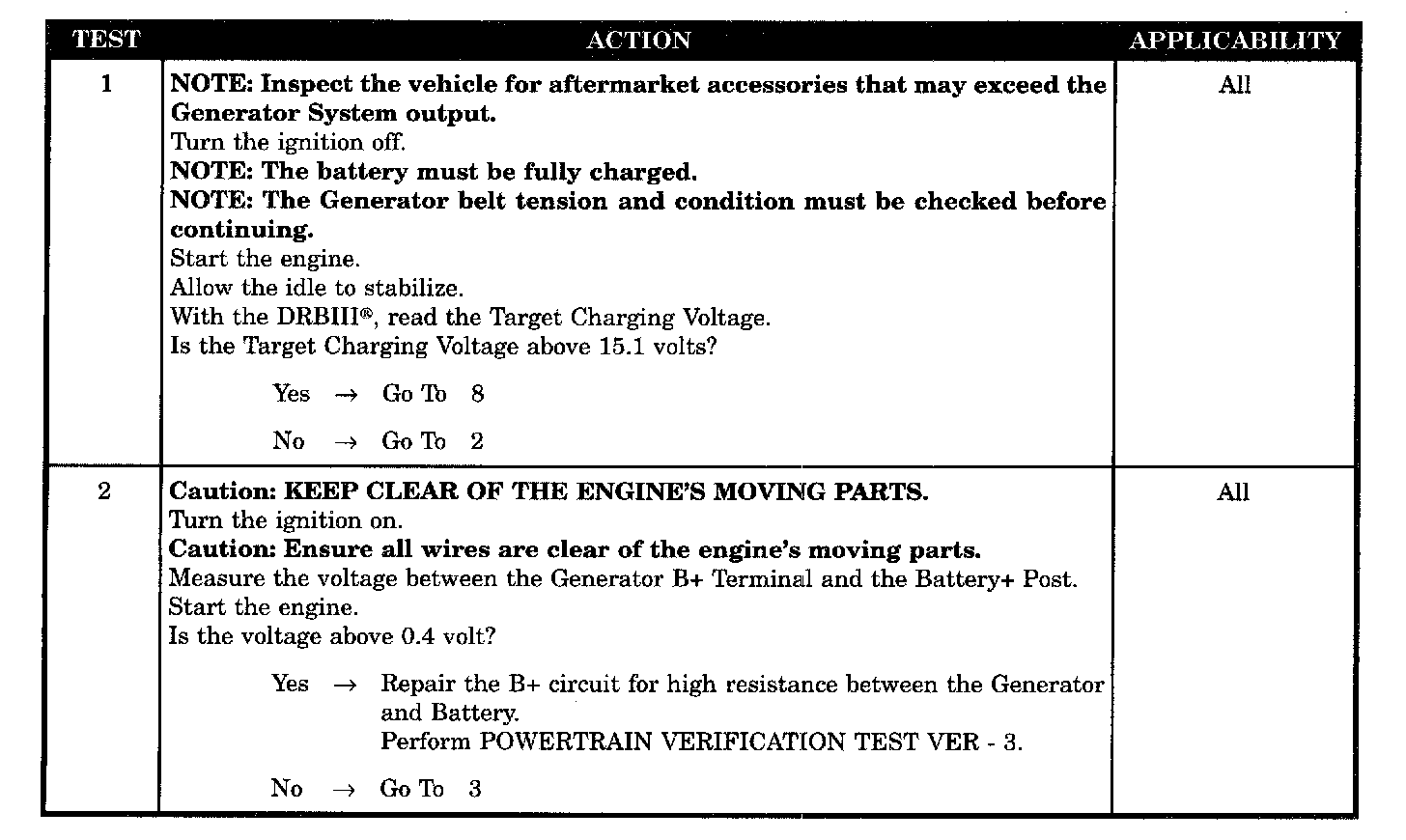 The battery sensed voltage is 1 volt below the charging goal for 13.47 seconds. The PCM senses the battery Voltage turns OFF the field driver and senses the battery voltage again. If the voltages are the same, the code is set.