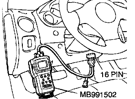 CAUTION: To prevent damage to the scan tool MB991502, always turn the ignition switch to the "LOCK" (OFF) position before connecting or disconnecting the scan tool MB991502.