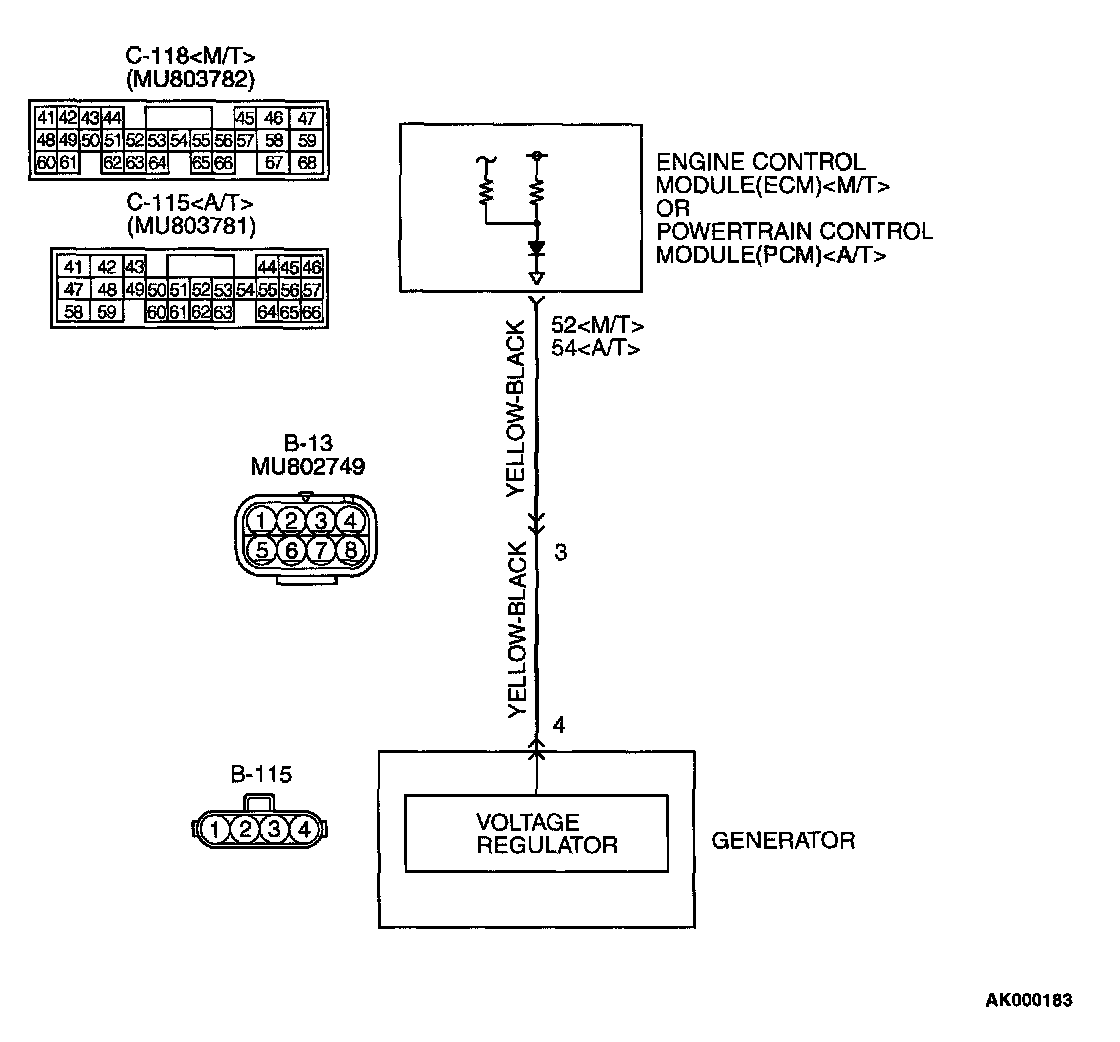 STEP 10. Check for harness damage between generator connector B-115 terminal 4 and ECM connector C-118 terminal 52