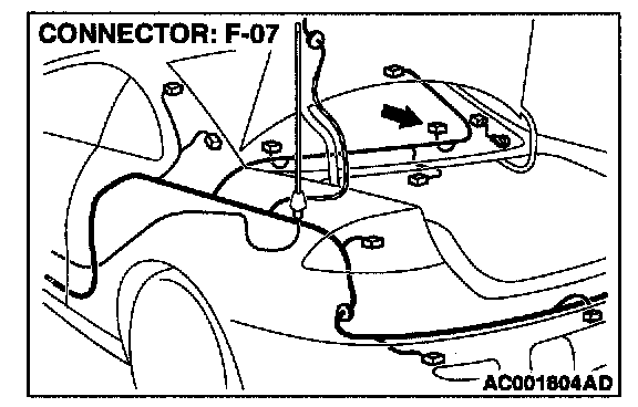 STEP 33. Check rear speaker (RH) connector F-07 and amplifier connector D-19 for damage.