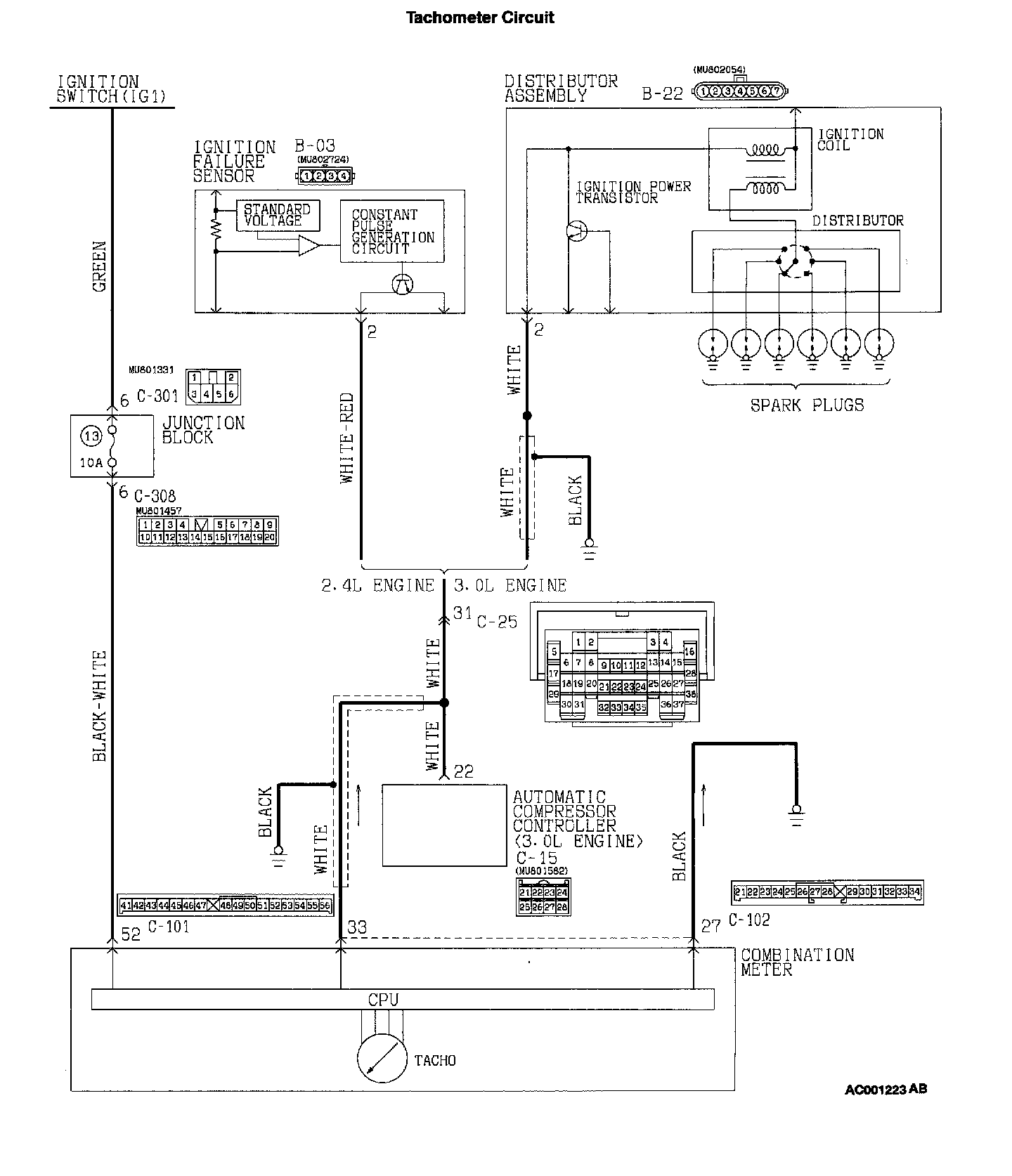 - For vehicles with 3.0L engine, the tachometer detects the ignition signal control via the distributor assembly.