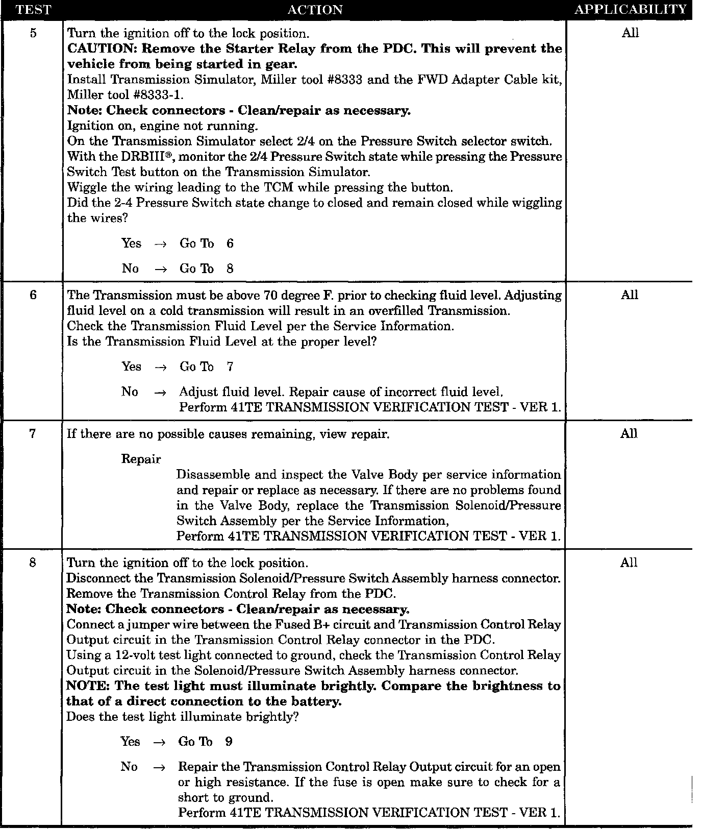 TRANSMISSION CONTROL RELAY OUTPUT CIRCUIT OPEN