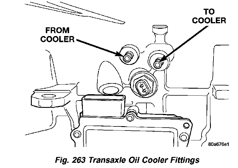 1. Using hose cutters or a suitable blade, cut the "to cooler" (Fig. 263) line off flush with the cooler inlet fitting and place a collection container under the open line.