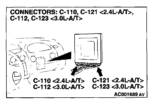 1. Do not disconnect connectors C-110, C-121 <2.4L> or C-112, C-123<3.0L>.