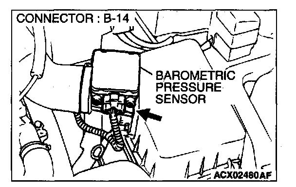STEP 1. Using scan tool MB991502, check data list item 25: Barometric Pressure Sensor.