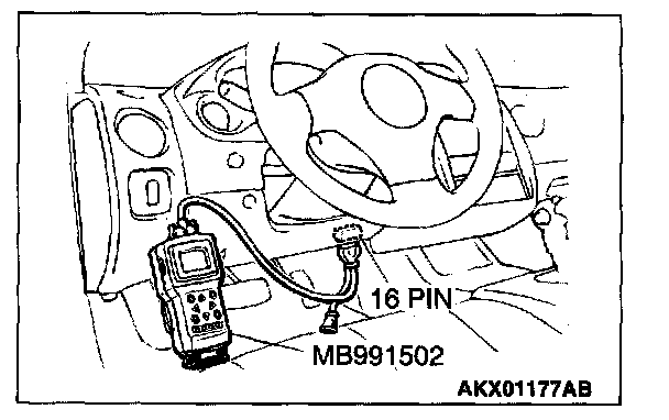 1. Connect scan tool MB991502 to the data link connector.