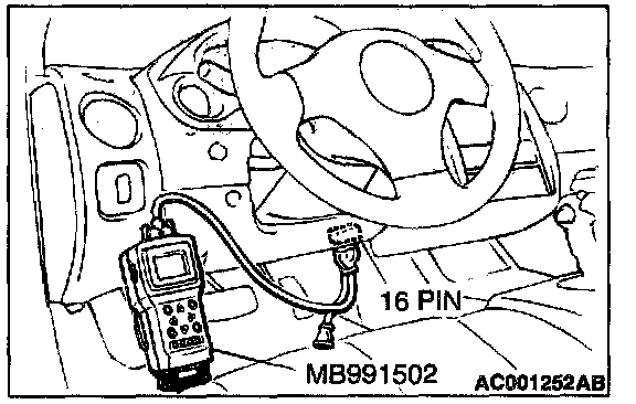 - To prevent damage to scan tool MB991502, always turn the ignition switch to the "LOCK" (OFF) position before connecting or disconnecting scan tool MB991502.