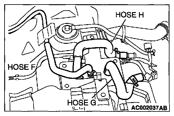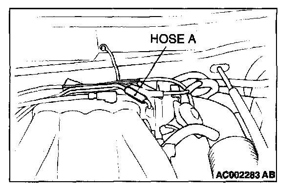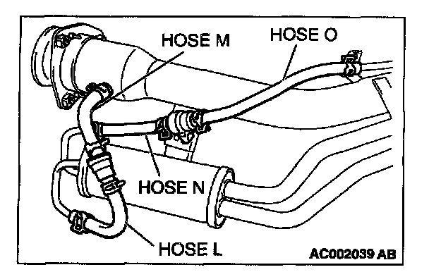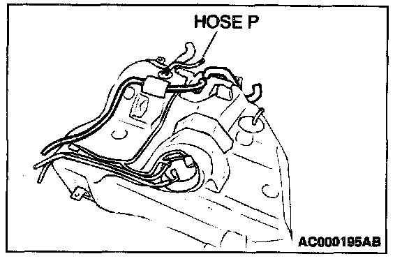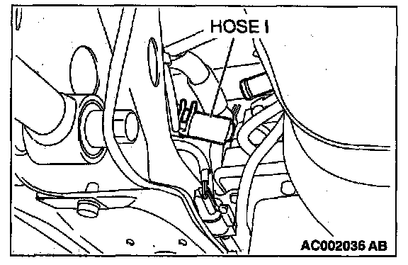 1. Disconnect hose I from the evaporative emission canister side, and plug the hose from which the pipes have been disconnected.