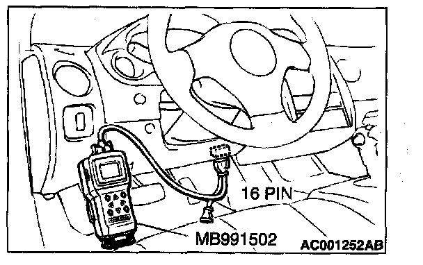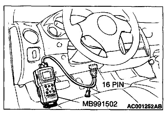 To prevent damage to scan tool MB991502, always turn the ignition switch to the "LOCK" (OFF) position before connecting or disconnecting scan tool MB991502.