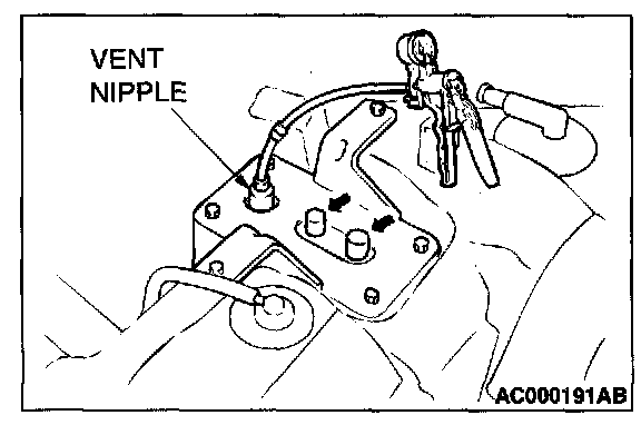 5. Set scan tool MB991502 to actuator test mode for item 29: Evaporative Emission Ventilation Solenoid. When the evaporative emission ventilation solenoid is operated, apply a pressure on the hand vacuum pump and confirm that air is maintained.