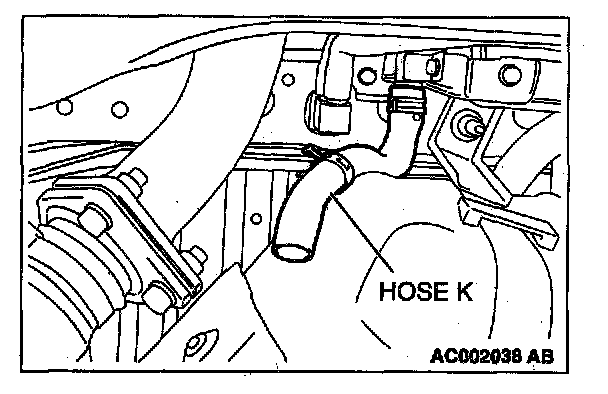 3. Disconnect hose K at the fuel tank side, and then plug the hose.