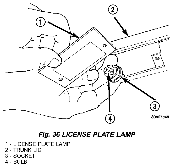 REMOVAL1. Remove screws attaching license plate lamp to rear bumper fascia